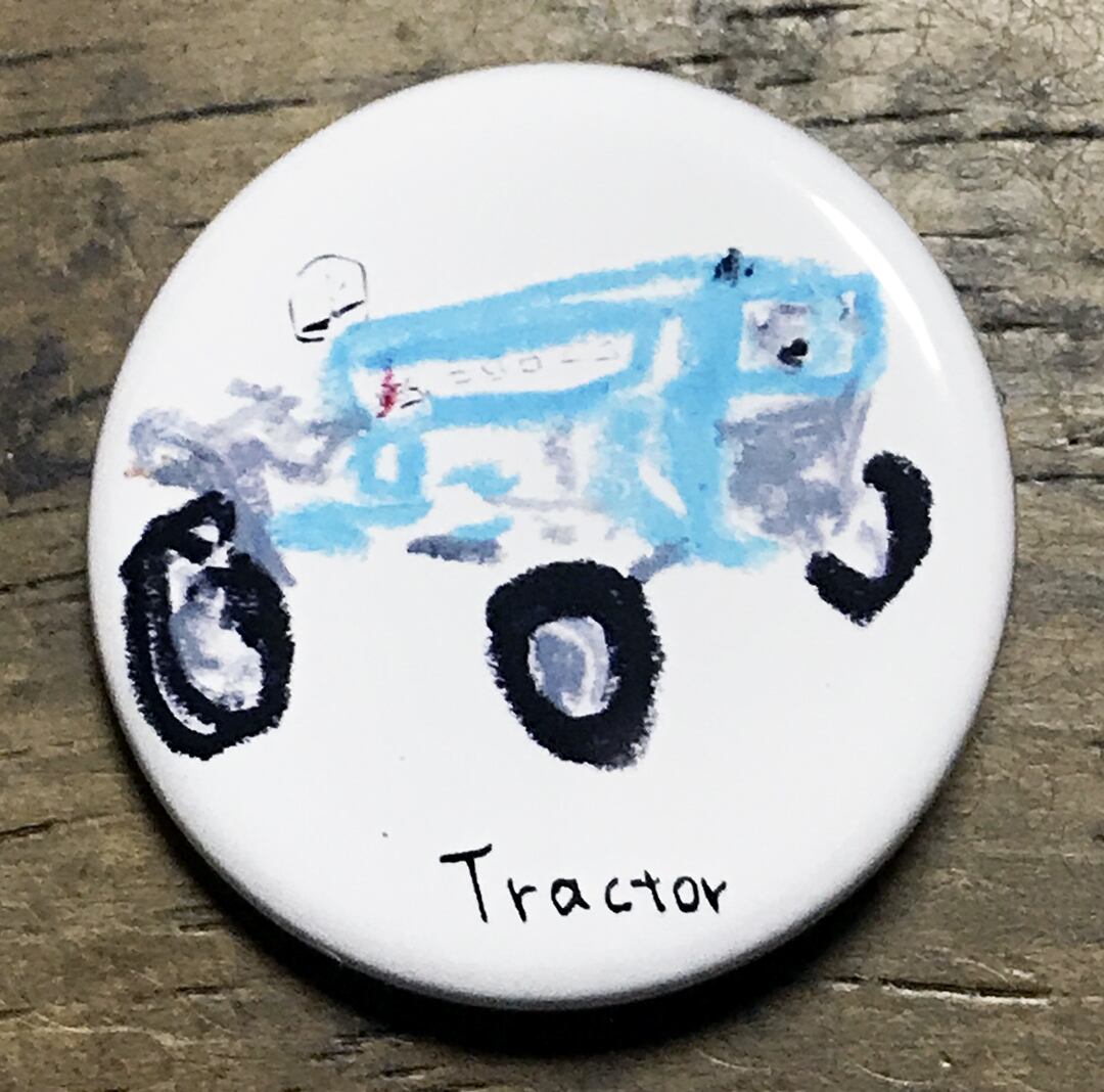 はたらくクルマ トラクター 水色 32mm 缶バッジ | ふじみ屋 fujimi-ya