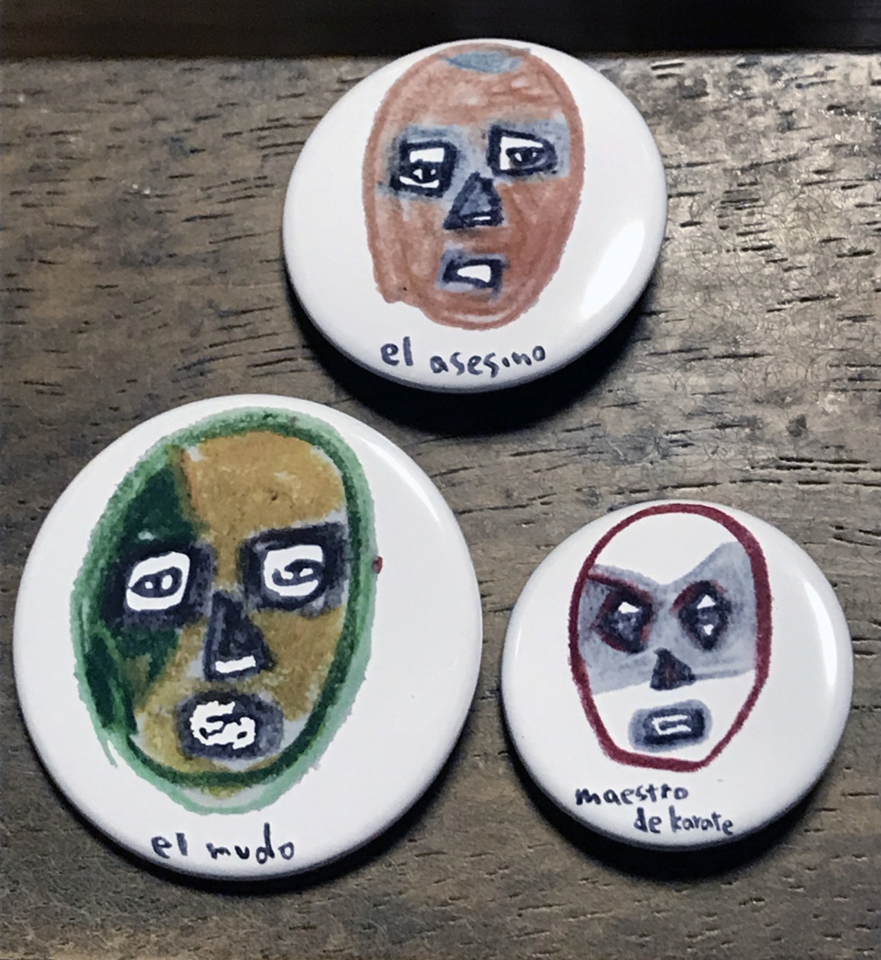メキシコのプロレス、ルチャ・リブレをモチーフにした架空のプロレス興行のポスターを描いたイラスト缶バッジシリーズ。フックピン方式。
